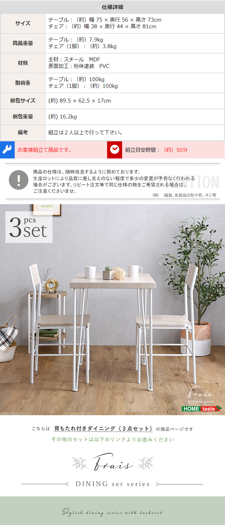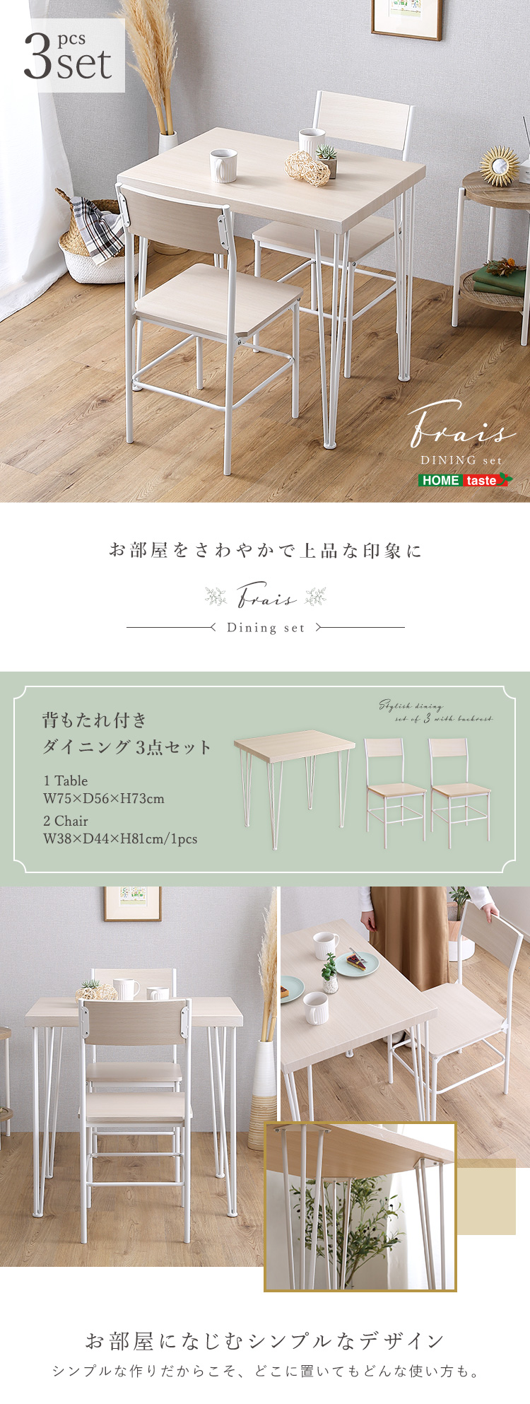 >>【Frais】背もたれ付きダイニング3点セットはこちら