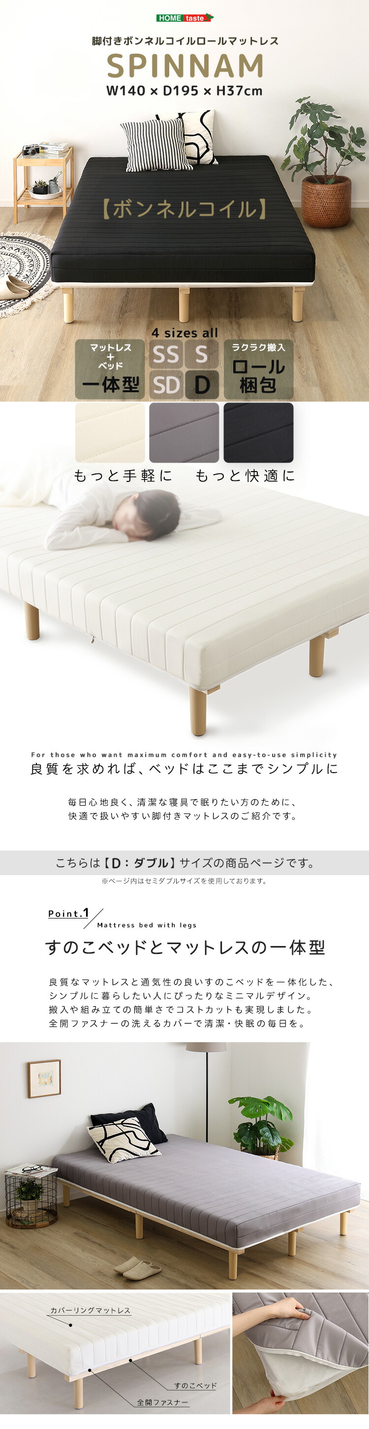 >> 脚付きボンネルコイルロールマットレス【SPINNAM-スピンナム-】SDサイズはこちら