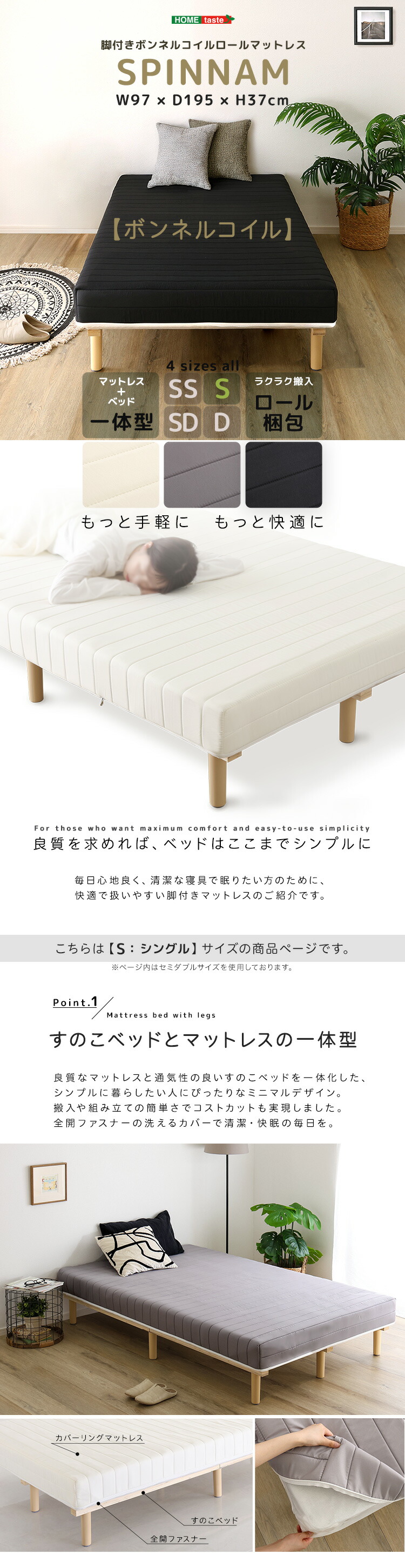 >>脚付きボンネルコイルロールマットレス【SPINNAM-スピンナム-】 SSサイズはこちら