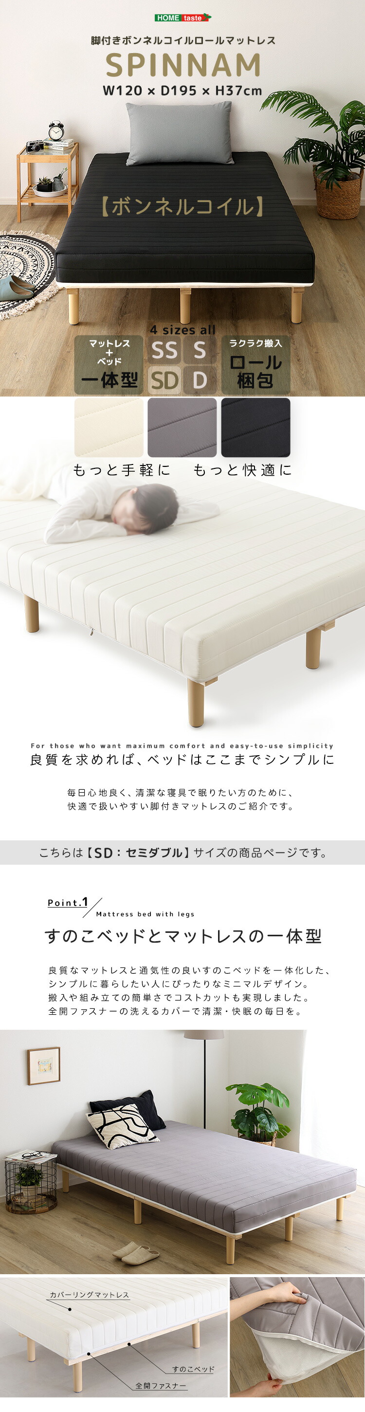 脚付きボンネルコイルロールマットレス【SPINNAM-スピンナム-】 セミダブルサイズ