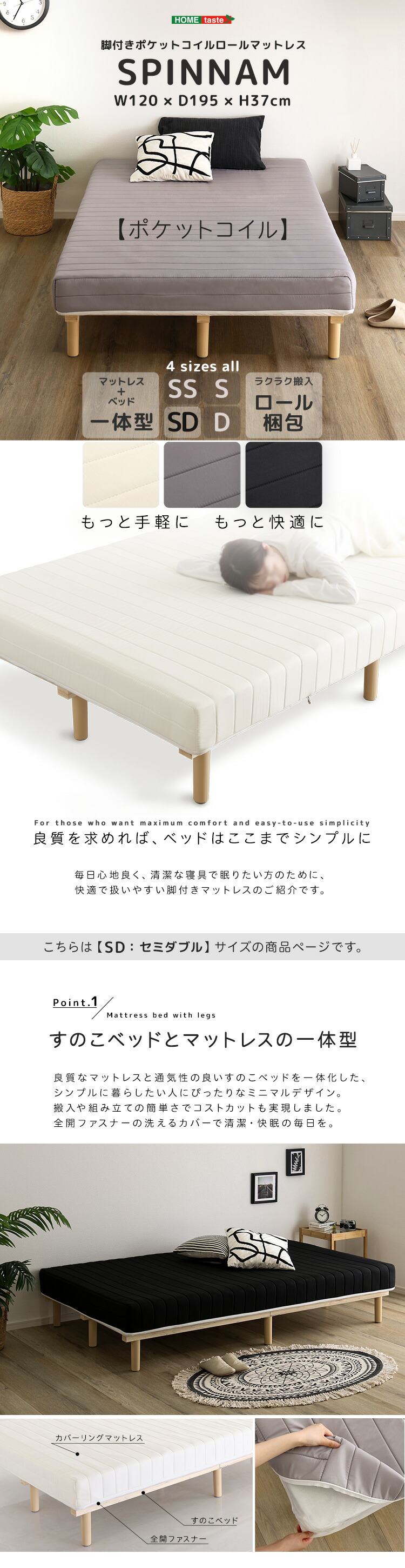 脚付きポケットコイルロールマットレス【SPINNAM-スピンナム-】 セミダブルサイズ