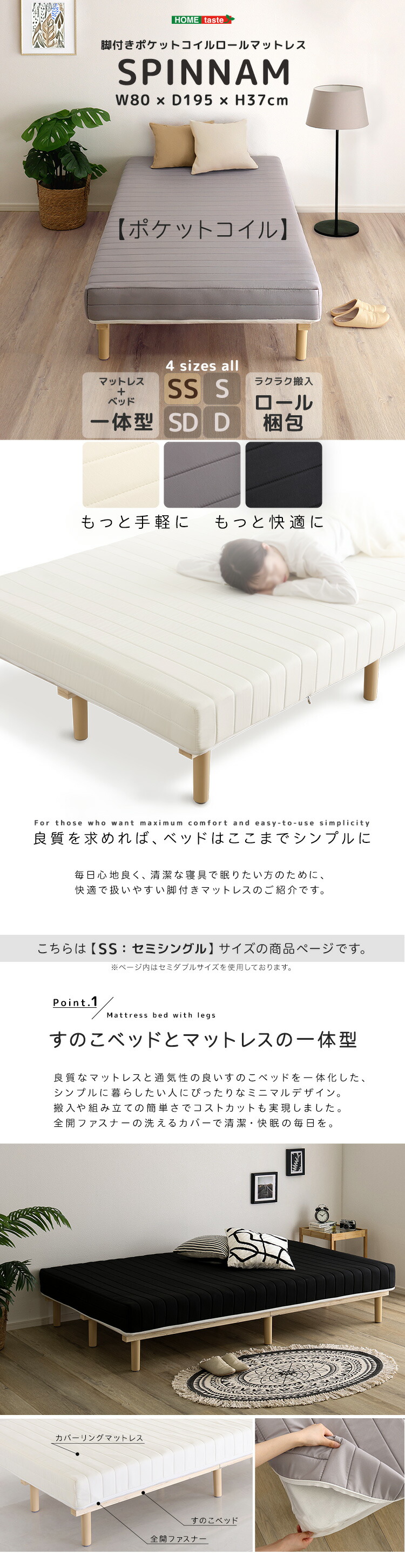 脚付きポケットコイルロールマットレス【SPINNAM-スピンナム-】 セミシングルサイズ