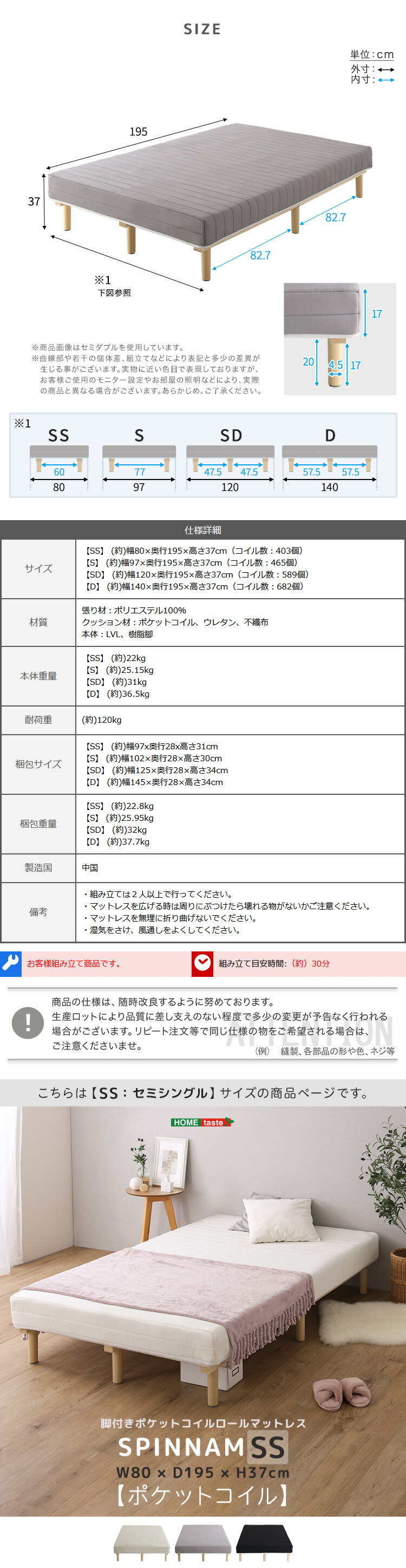 >> 脚付きポケットコイルロールマットレス【SPINNAM-スピンナム-】SDサイズはこちら