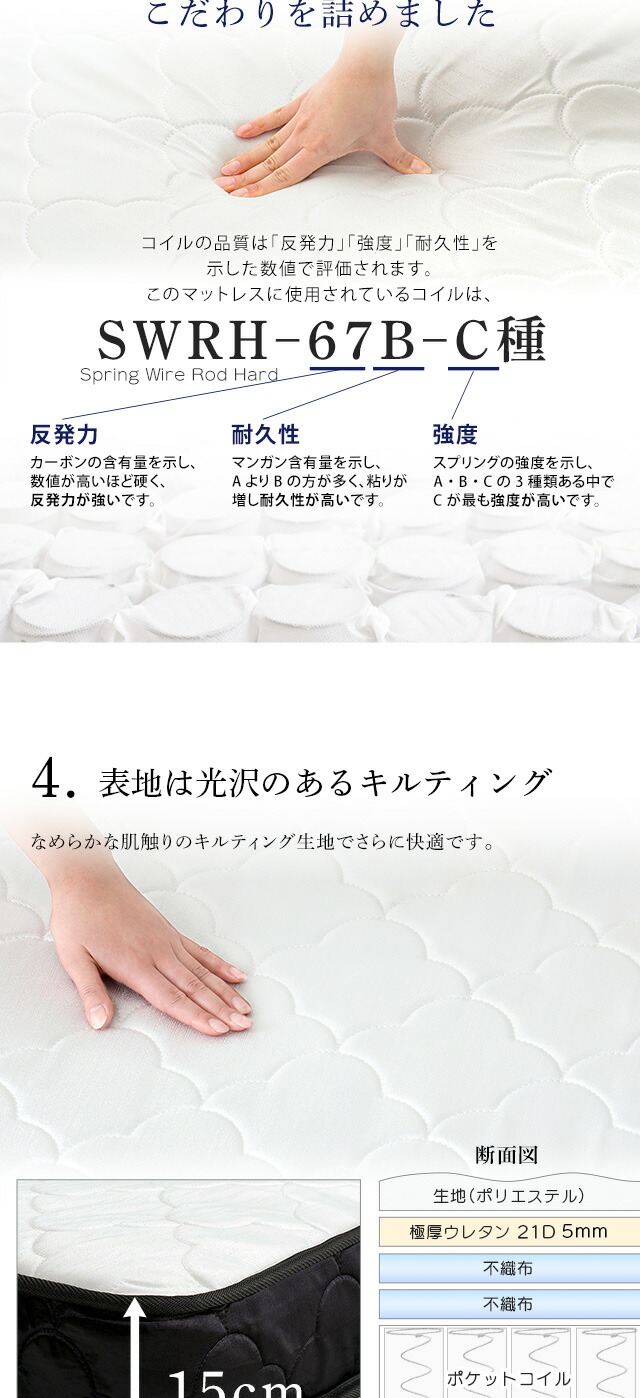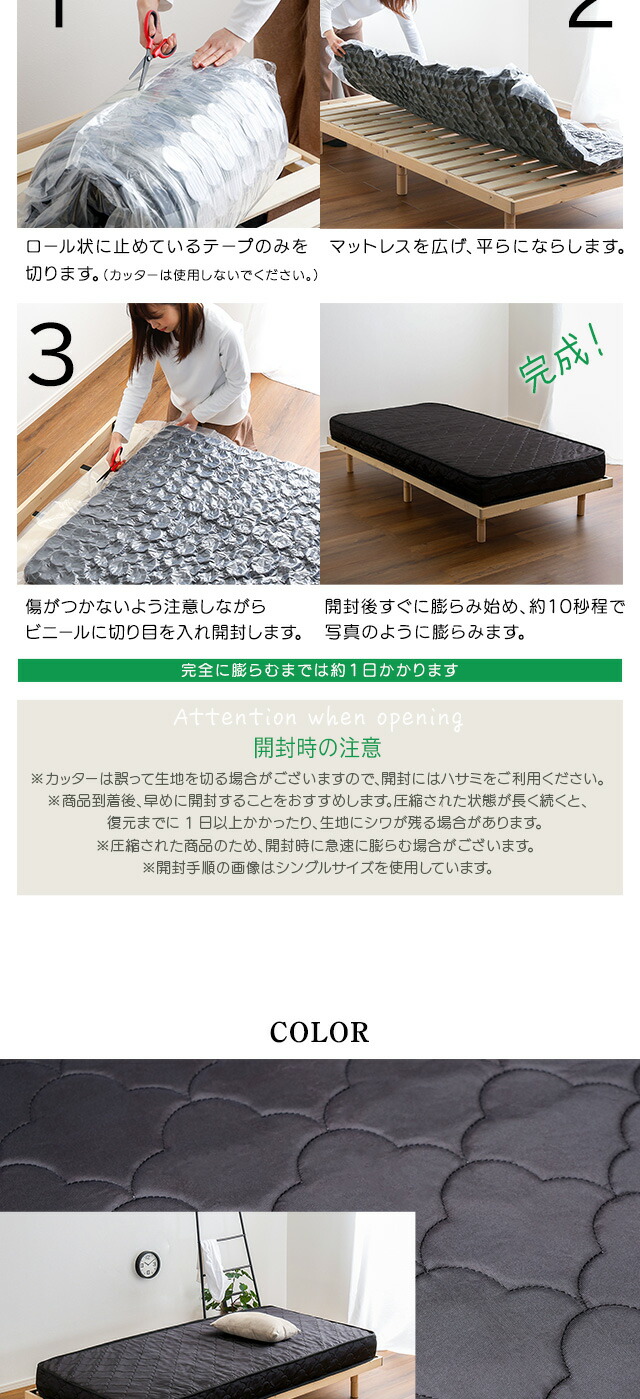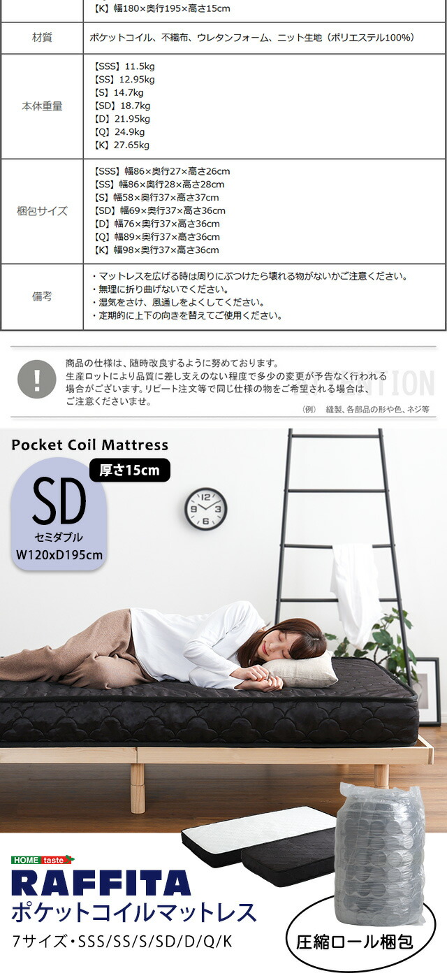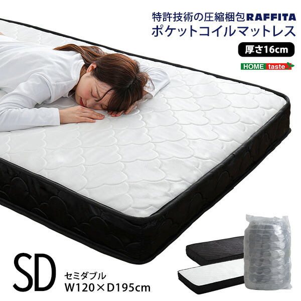 特許技術の圧縮梱包 ポケットコイルマットレス(セミダブル)
