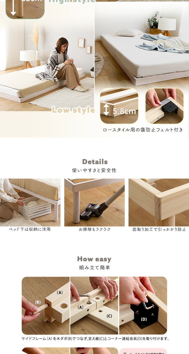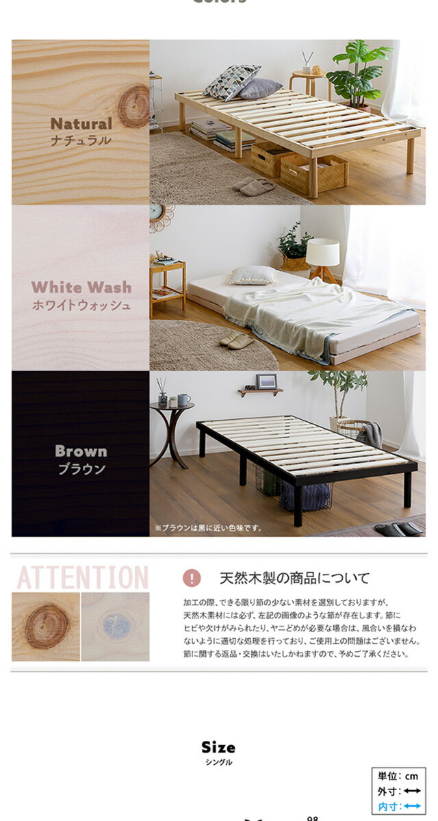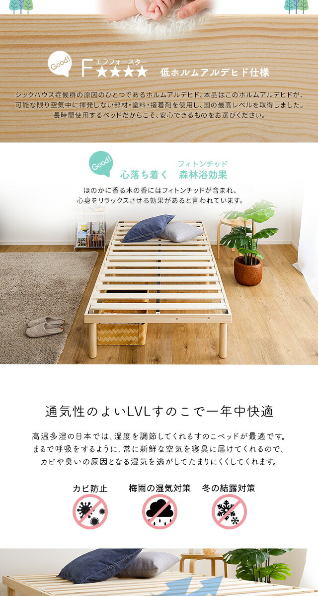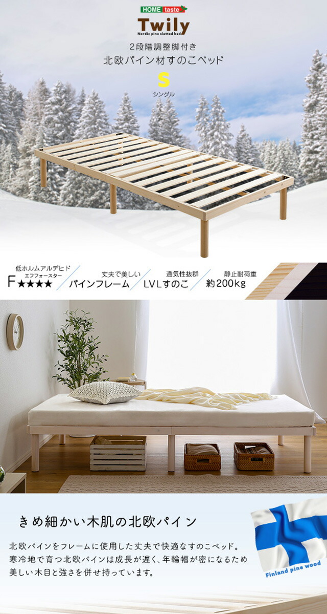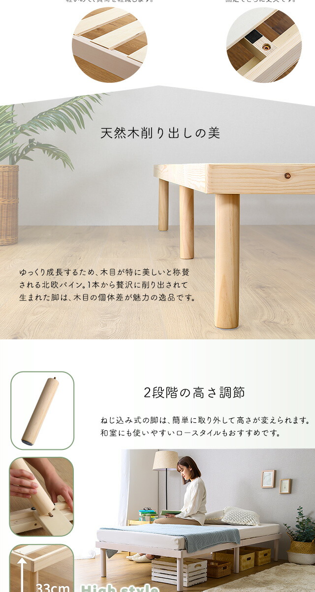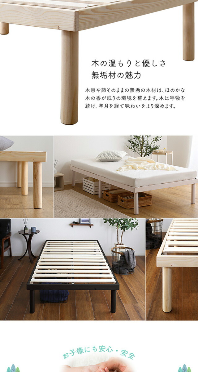 パイン材高さ2段階調整脚付きすのこベッド(シングル)