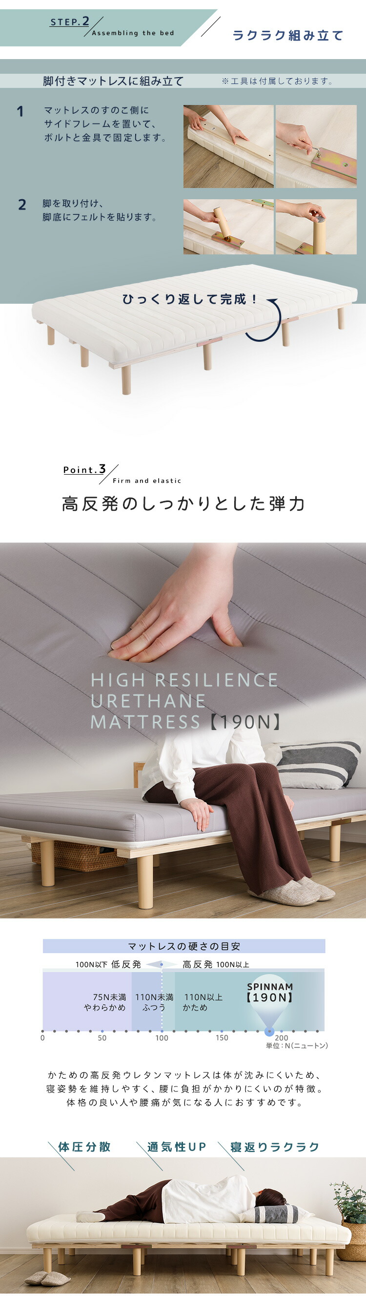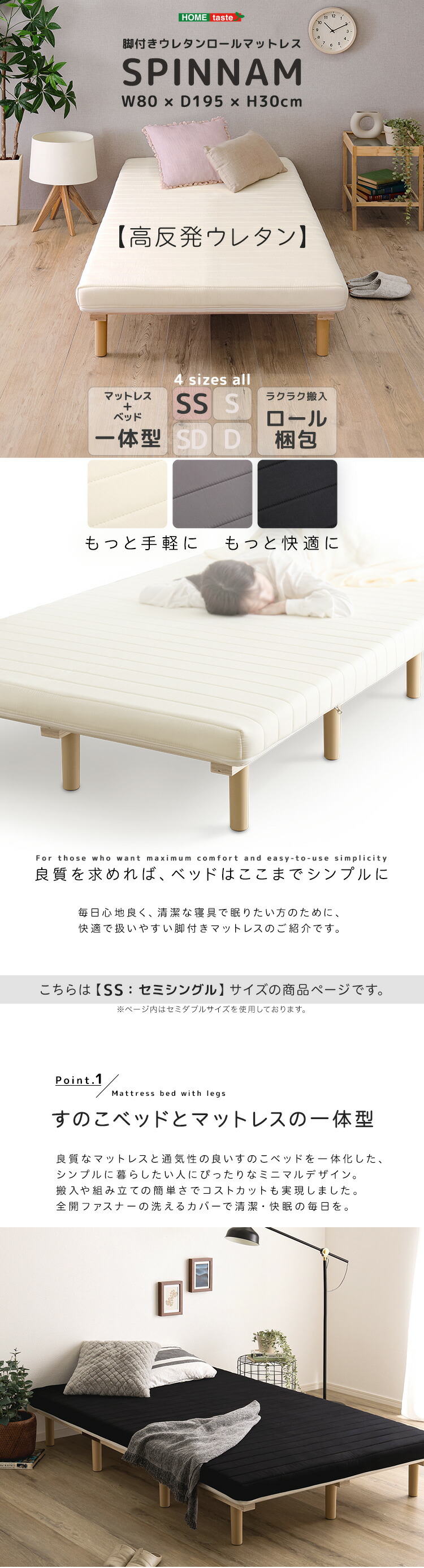 >> 脚付きウレタンロールマットレス【SPINNAM-スピンナム-】SDサイズはこちら