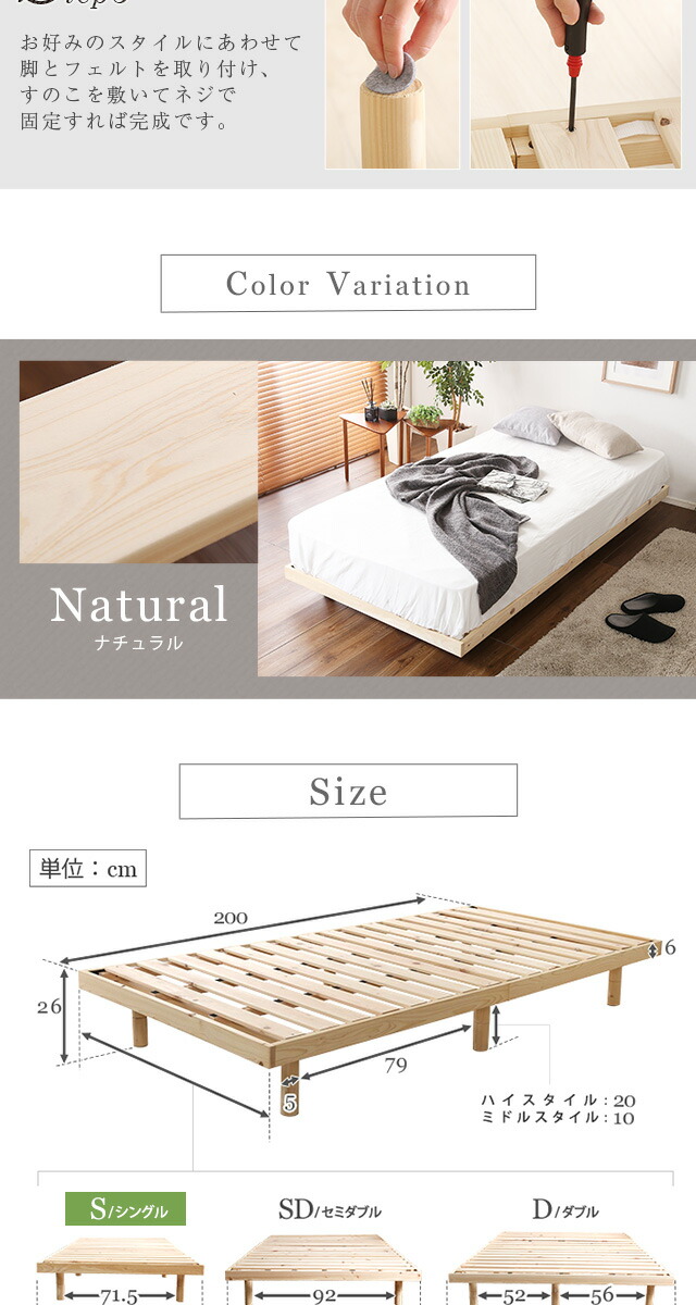 総檜脚付きすのこベッド(シングル) 【Pierna-ピエルナ-】