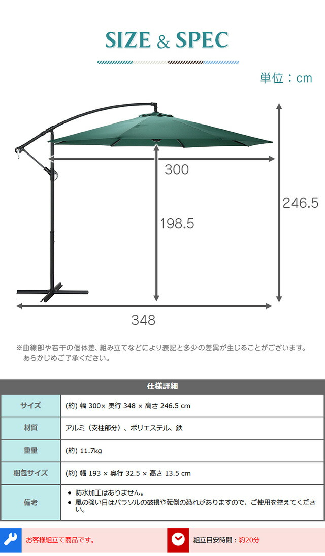 ハンギングパラソル 300cm幅 【Shade-シェイド-】
