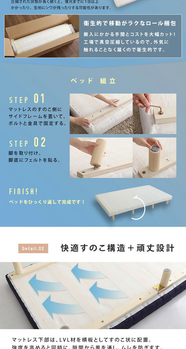 脚付きウレタンロールマットレス【TERRDAM-テルダ-】 セミダブルサイズ