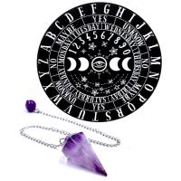 | 主な仕様 | ダウジングチャートと、アメジストの水晶が付いた美しいペンデュラム振り子のセット。チャートシートのカラーはブラックとホワイト、柄はスター(ペンタグラム)とプロビデンスからお選びいただけます。ダウジングや占いにご使用いただけます。