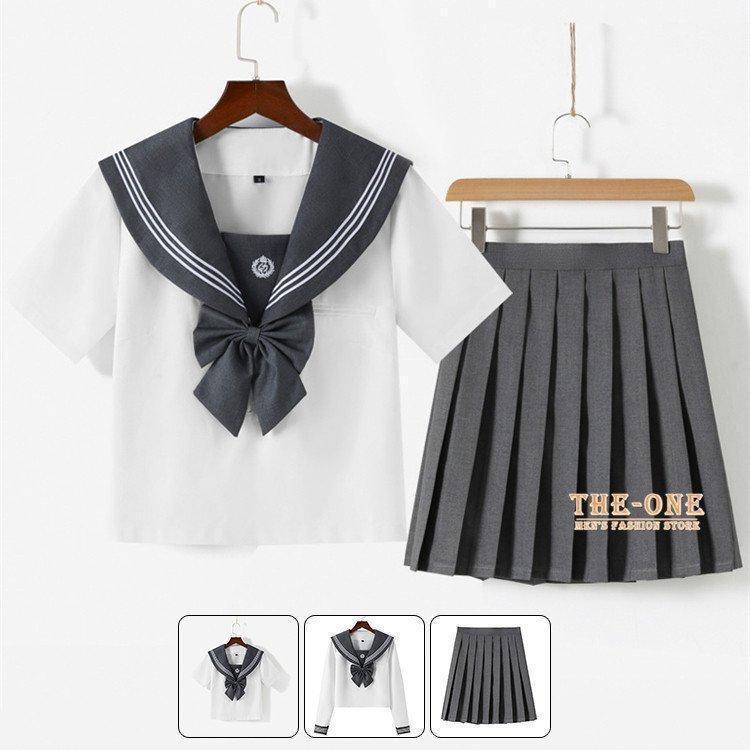 セーラー服 正統派 制服 女子高生 通学 学生 中学 グレー 白 半袖 長袖 セットアップ 単品 ブラウス プリーツスカート