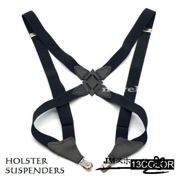 ホルスターサスペンダー サイド吊り型 サスペンダー メンズ 男性 無地 ガンタイプ ホルスタータイプ 2点留め ビジネス かっこいい スマート ファッ