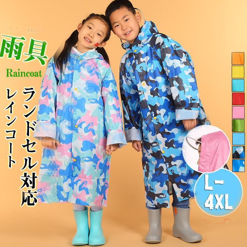レインコート キッズ レインウェア 男の子 女の子 ランドセル対応 ファスナー ボタン ポンチョ バイザー 無地 迷彩 小学生 通学 自転車 雨具