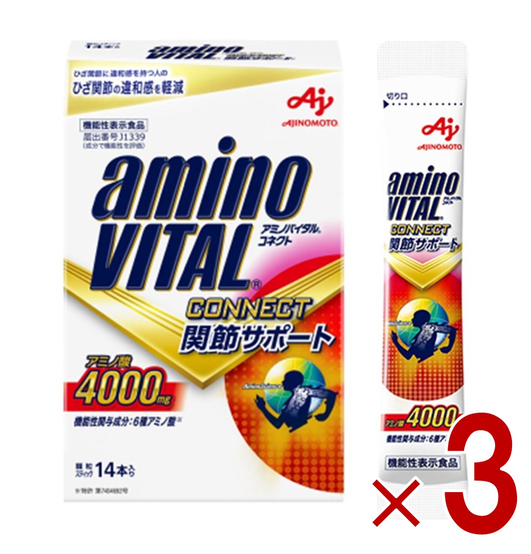 (11-12 P4倍)味の素 アミノバイタル CONNECT 関節サポート 14本入り 顆粒 スティック レモン味 アミノ酸 4000mg 3個