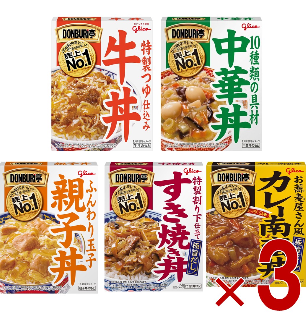 江崎グリコ DONBURI亭 どんぶり亭 牛丼 中華丼 親子丼 すき焼き丼 カレー南蛮丼 食べ比べ アソートセット レトルト レンジ 各3個
