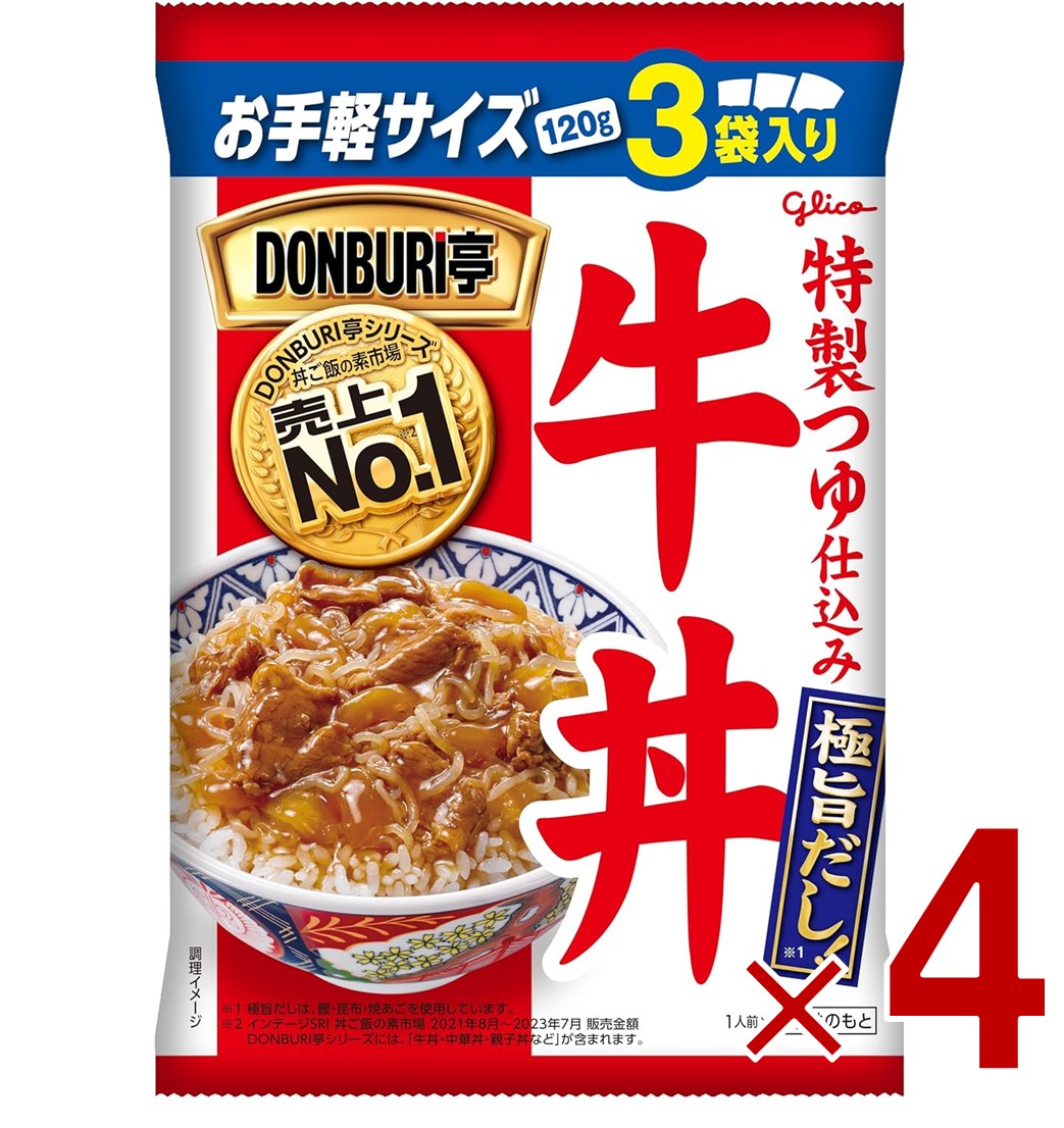 江崎グリコ DONBURI亭 どんぶり亭 牛丼 120g 3袋入り レトルト レンジ 4個