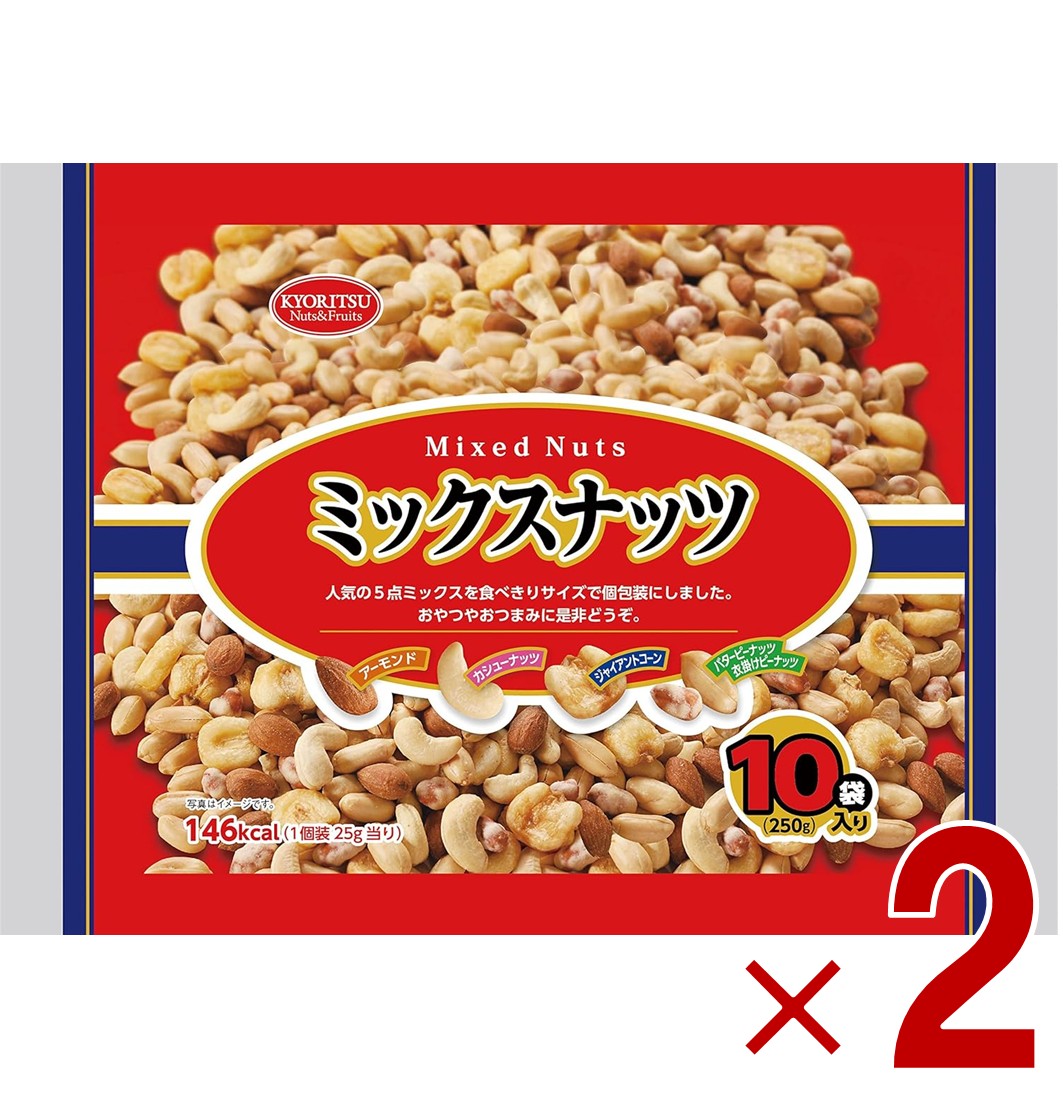 共立食品 ミックスナッツ 10パック 25g×10袋入り アーモンド カシューナッツ ジャイアントコーン ピーナッツ 2個