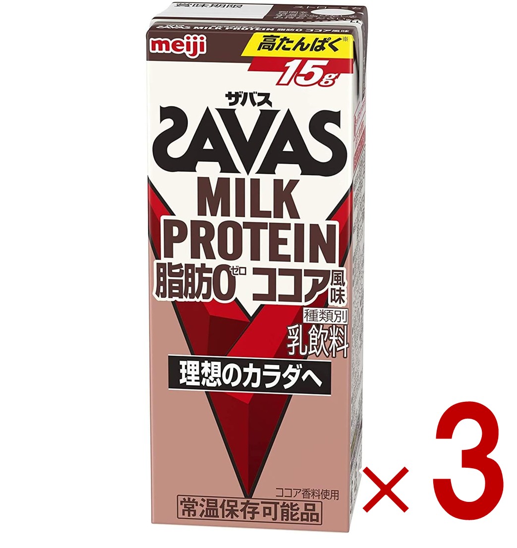 SAVAS ザバス MILK PROTEIN 脂肪0 ミルクプロテイン 200ml ココア味 ダイエット 明治 meiji 紙パック プロテイン15g 3個