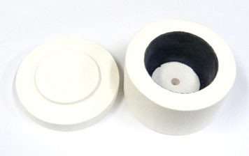 電子レンジでフュージング。マイクロウエーブキルン。内寸φ7cm H4cm 外寸φ12cm、H8.5cm。焼成時間5分。かなり小ぶりなサイズですが装身具が作れます。 本体の他、12x12cmのファイバーシート(下に敷きガラスを載せて焼成)、電子レンジでガラスのジュエル(装身具)を作る手順を画像入りで解説したものが付属します。