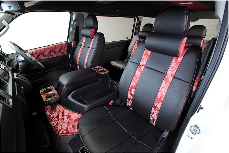 舞杏 レザーシートカバー京・和柄鯉 200系ハイエースバン 1台分