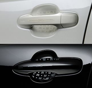 モノグラムロゴとDADロゴがドアノブ周辺をクールに変化させるとともに、ドアノブ下に付く爪などによるひっかき傷から愛車をガード。柔軟性に優れ、曲面にもしっかりフィット。特殊な3層構造により冬場の嫌な静電気の発生を軽減。あらゆる車種に対応 !