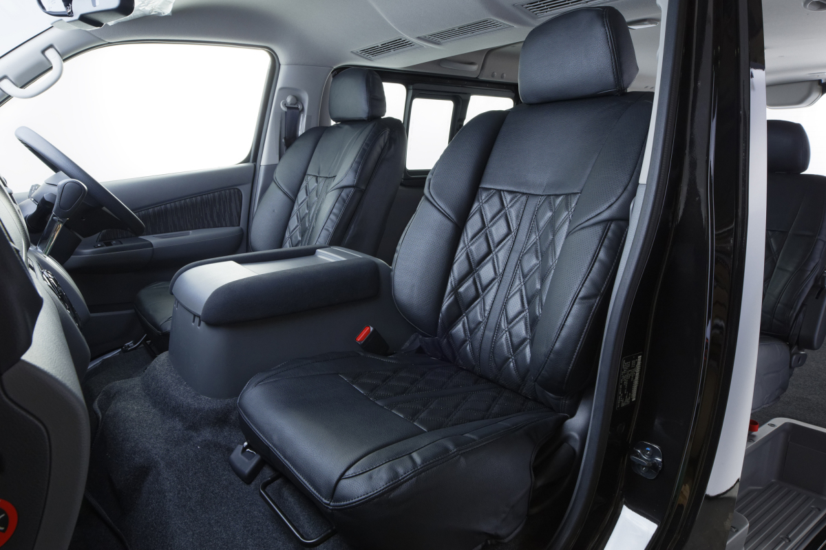 ハーツ(Hearts) 3Dバケットシートカバー5人乗り 1台分セット NV350キャラバンプレミアムGX用【ブラックステッチ】