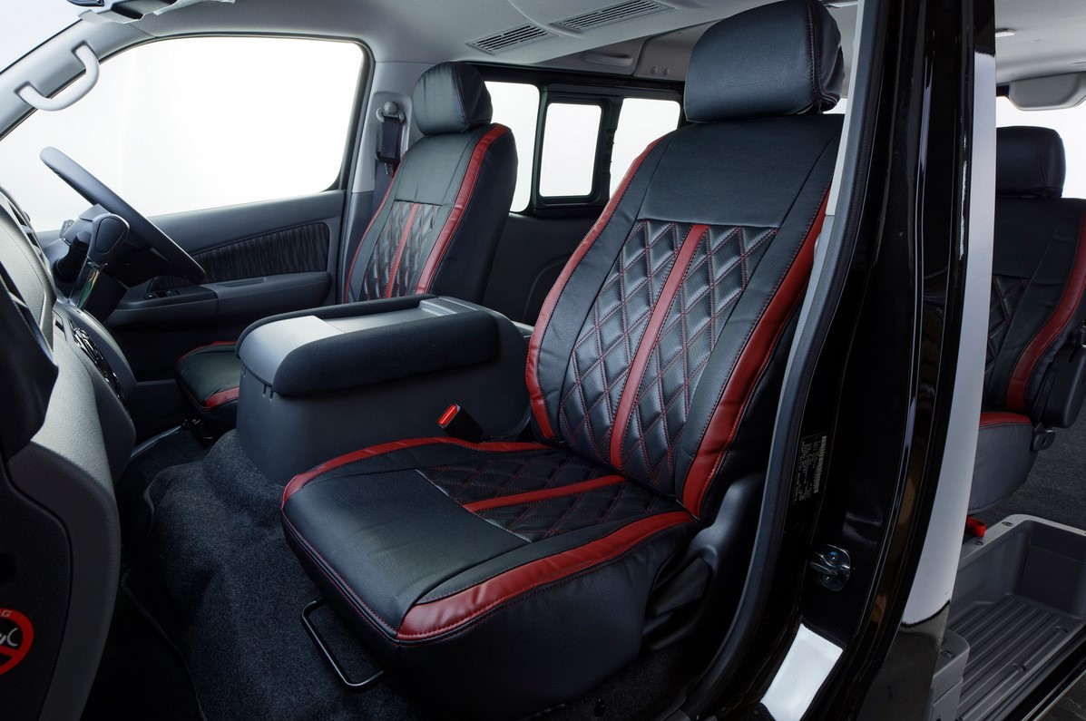 ハーツ(Hearts) スタンダードシートカバー5人乗り 1台分セット NV350キャラバンプレミアムGX用【レッドステッチ】