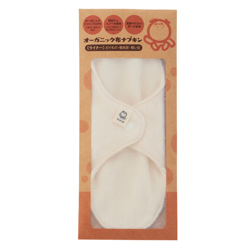 布から作られている生理用ナプキンです。 生地だけでなく、形や中地にもこだわり、多くの方に使っていただけるよう社員で何度も打ち合わせを重ねた想いのこもった布ナプキンです。