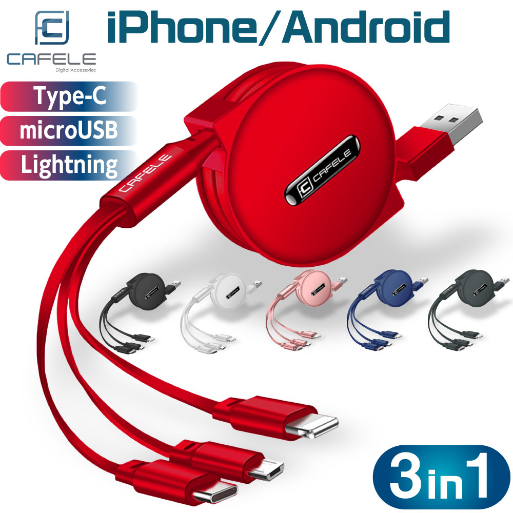 ![]() | CAFELE 充電ケーブル 3in1(コンパクトサイズ) はコチラ デザイン性に優れたデジタル雑貨を提供しているCAFELE(カフィール)から1本で3役をこなす、巻き取り式3in1タイプの充電ケーブルが登場!持ち運びに便利なコンパクトサイズ! |