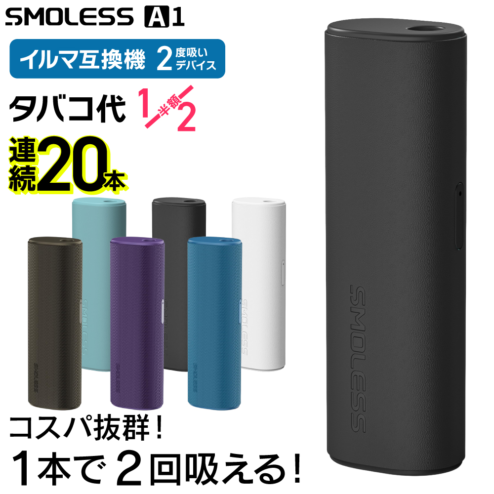 【商品説明】人気爆発中のアイコスイルマやアイコスイルマワンで吸い終えたシケモクを再利用できるアイコスイルマ互換機の 新ブランド ” SMOLESS ”(スモーレス)から、待望の新製品「SMOLESS A1」が新登場!