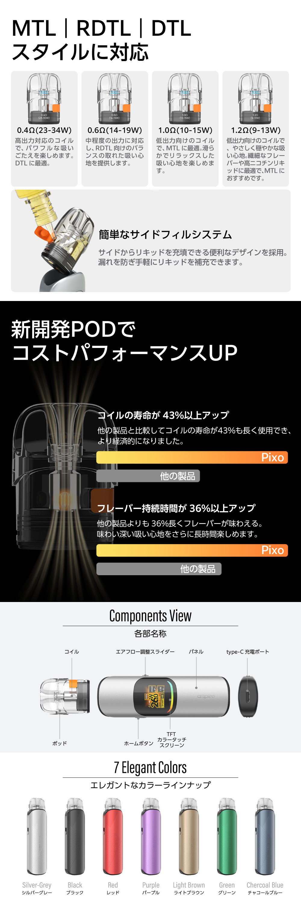 ![]() | ⇒ Aspire Pixo 純正 交換用 Pod カートリッジ 2個 セット はコチラ Aspire Pixo (アスパイア ピクソー)用 純正 交換用カートリッジ(POD)2個セット。 |