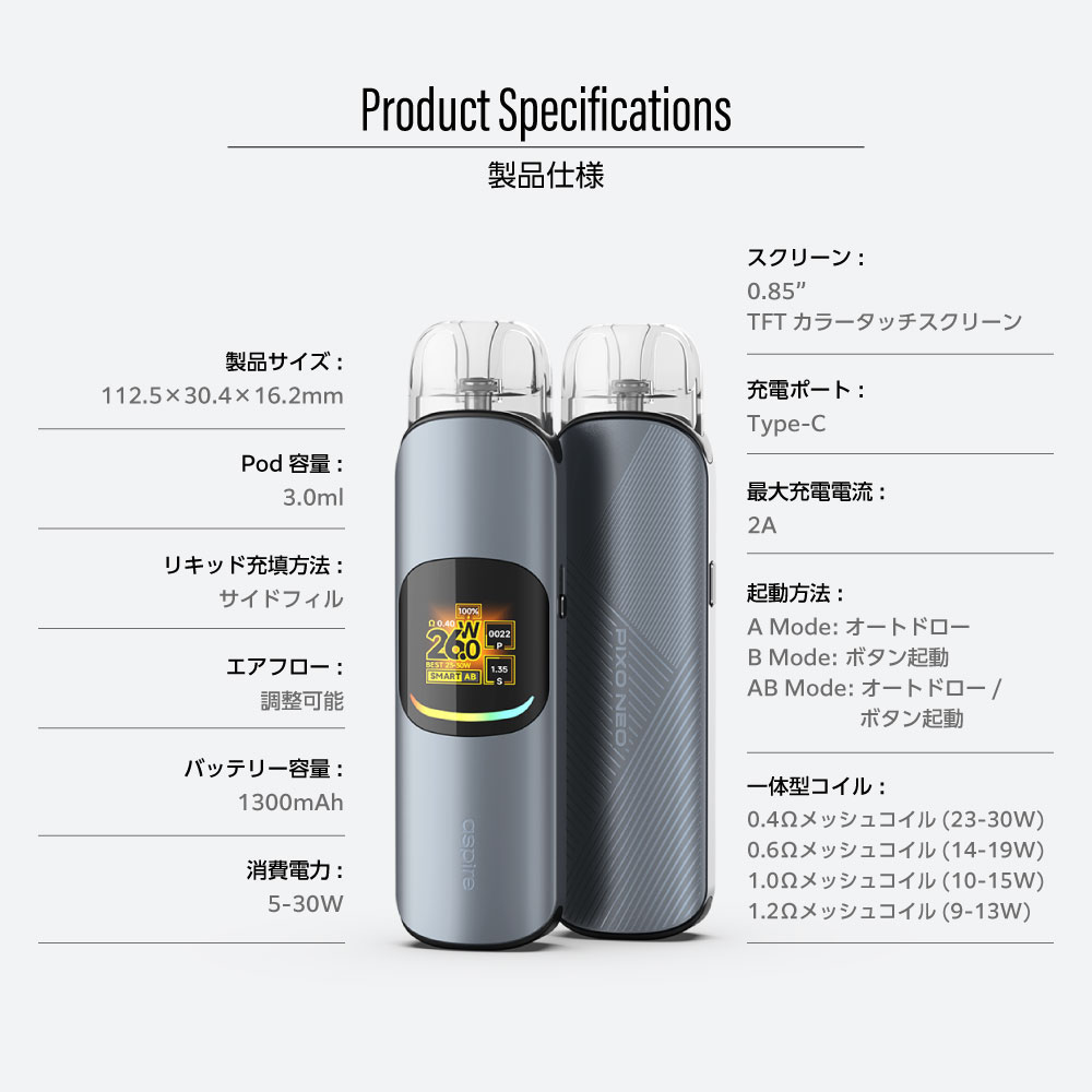 ![]() | ⇒ Aspire Pixo Neo(アスパイア ピクソー ネオ )と 交換用POD 2個と選べるリキッド1本セットはコチラ 交換用POD2個と選べるデジモクリキッドが1本付いたとってもおトクなセット。 |