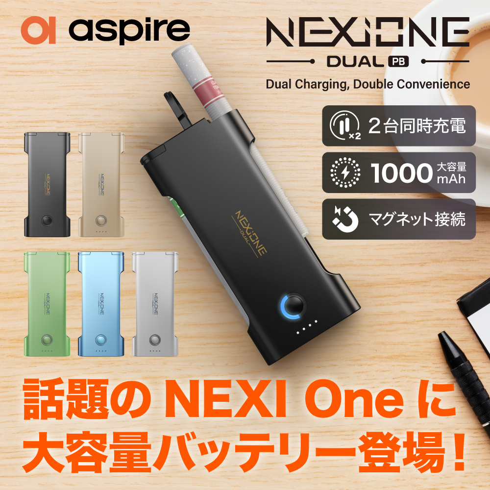 老舗ブランド Aspire(アスパイア) が手掛ける人気ライターサイズ電子タバコ「NEXI One(ネクシー ワン)」専用の追加アクセサリーとして、2本同時にスティックを挿して充電できる NEXI One Dual(デュアル) が登場しました。