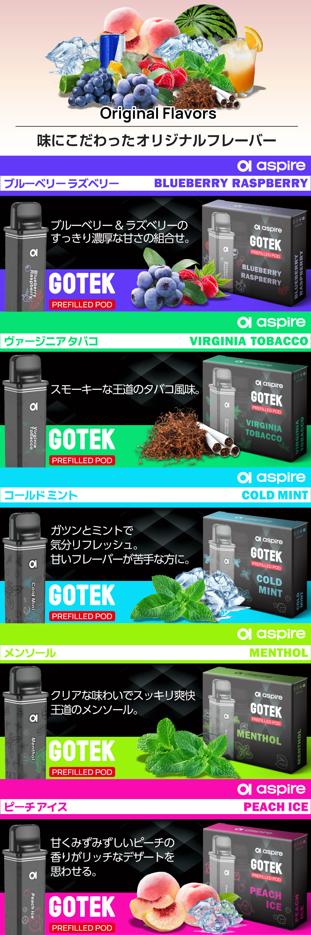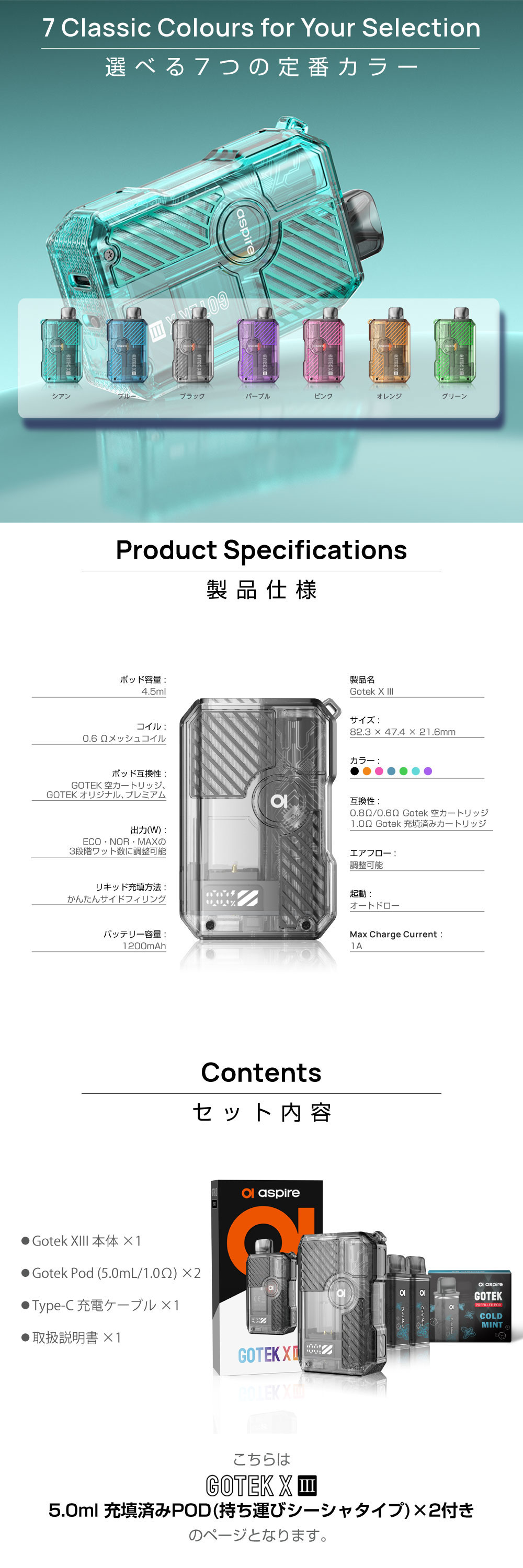 ![]() | ⇒Aspire GOTEK X3(アスパイア ゴーテック エックス3) リキッド5本セットはコチラ 選べるリキッドが5本付いたお得なセット。色々な味でお楽しみください! |
