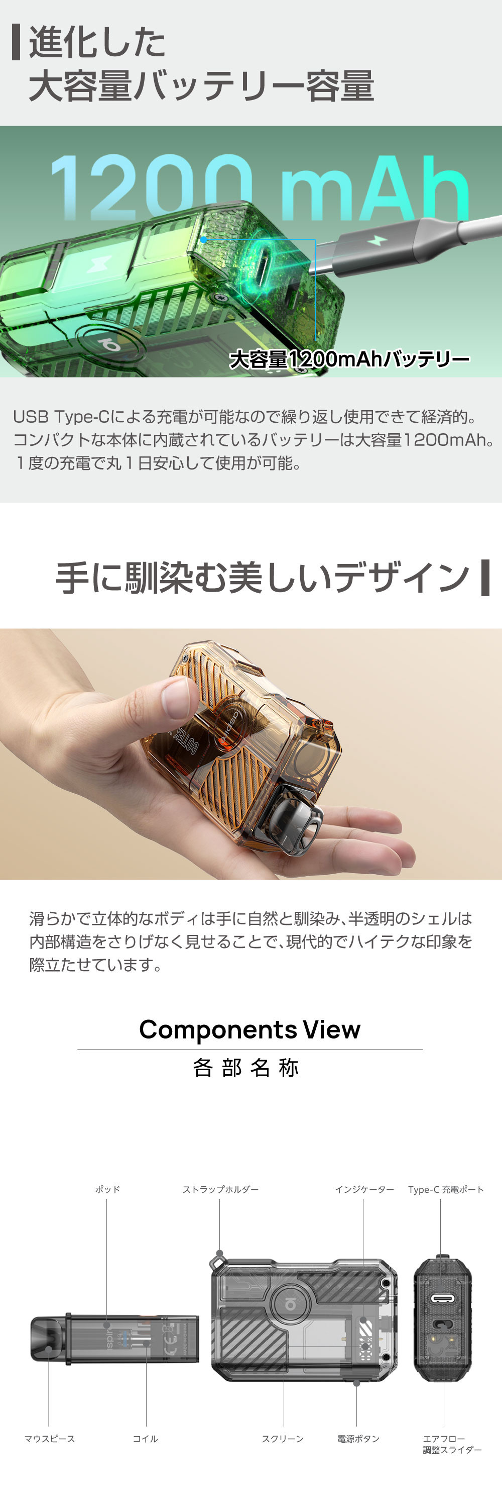 ![]() | ⇒交換用 POD カートリッジ(2個セット)はコチラ Aspire GOTEK (アスパイア ゴーテック)シリーズの交換用PODカートリッジ。2個セットになります。 |