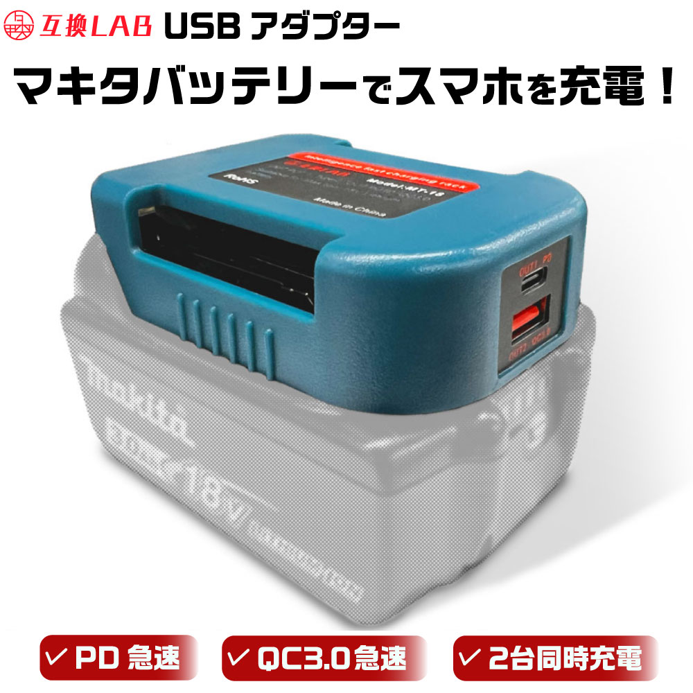 MAKITA バッテリー USB アダプター ベルトホルダー 18V 互換LAB 互換ラボ 互換バッテリー 対応 急速充電 スマホ PC タブレット