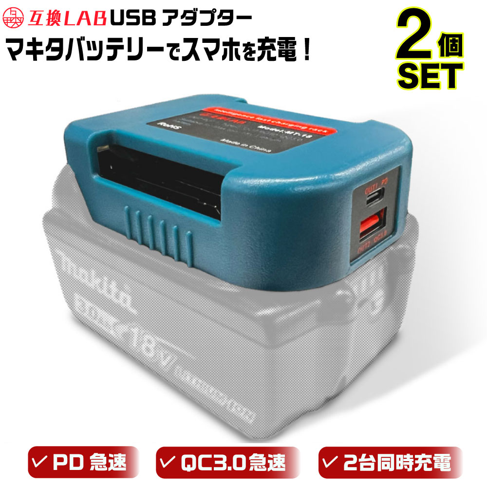 MAKITA バッテリー USB アダプター ベルトホルダー 18V 互換LAB 互換ラボ 互換バッテリー 対応 急速充電 スマホ PC タブレット