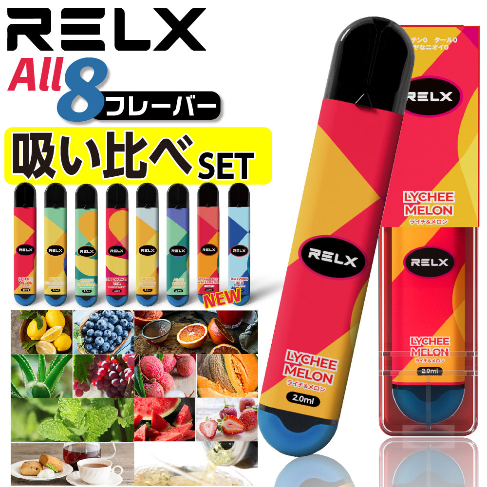 ■圧倒的な美味しさのフレーバーRELXのフレーバーは全8種類。飲料・フルーツ・メンソールといった、誰もが親しめる味を選定し、韓国でも大人気のフレーバー6種類「シトラスメンソール・ライチメロン・アロエグレープ・ブレックファーストティー・レモンブルーベリー・ブラッドオレンジ」と、新たに開発した2種類「エナジードリンク・ストロベリーウォーターメロン」をご用意。