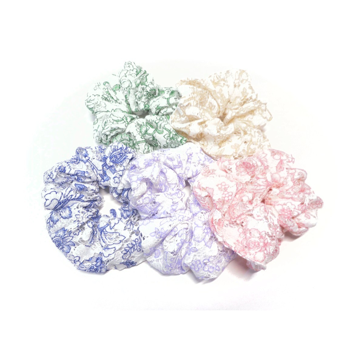 シュシュ フラワー 白地レース 花柄 おしゃれ