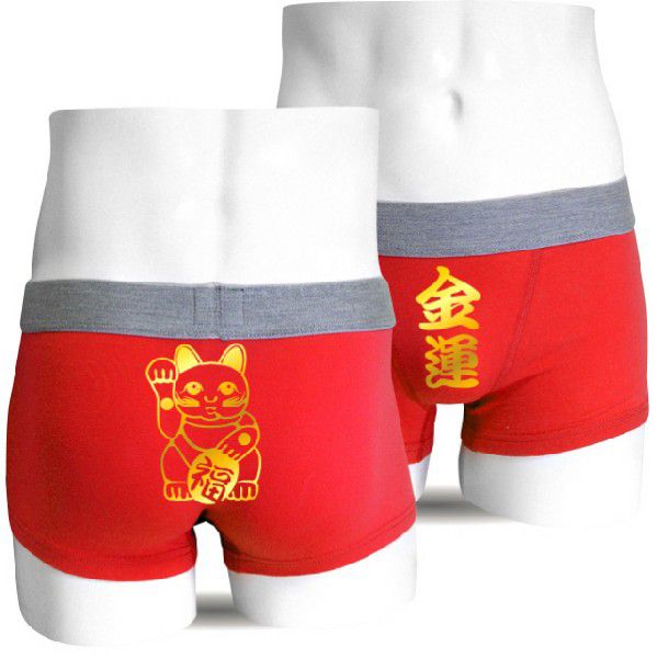 縁起の良い真っ赤なパンツに金色の招き猫をプラス!!