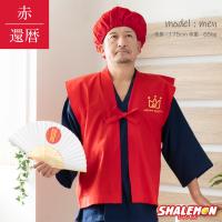 シャレもんオリジナル還暦祝い用ちゃんちゃんこ+頭巾+扇子のセットです。