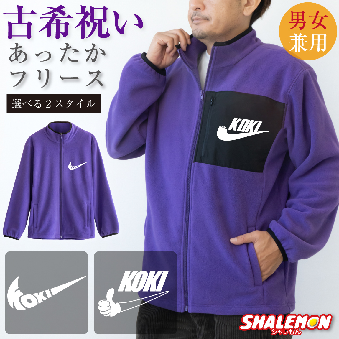 古希祝い フリース 男性 女性 古希 プレゼント 父 母 ( 選べる デザイン KOKIパイプ エアー いいね) 70歳 古希のお祝い 紫 ギフト 男女兼用 メンズ レディース