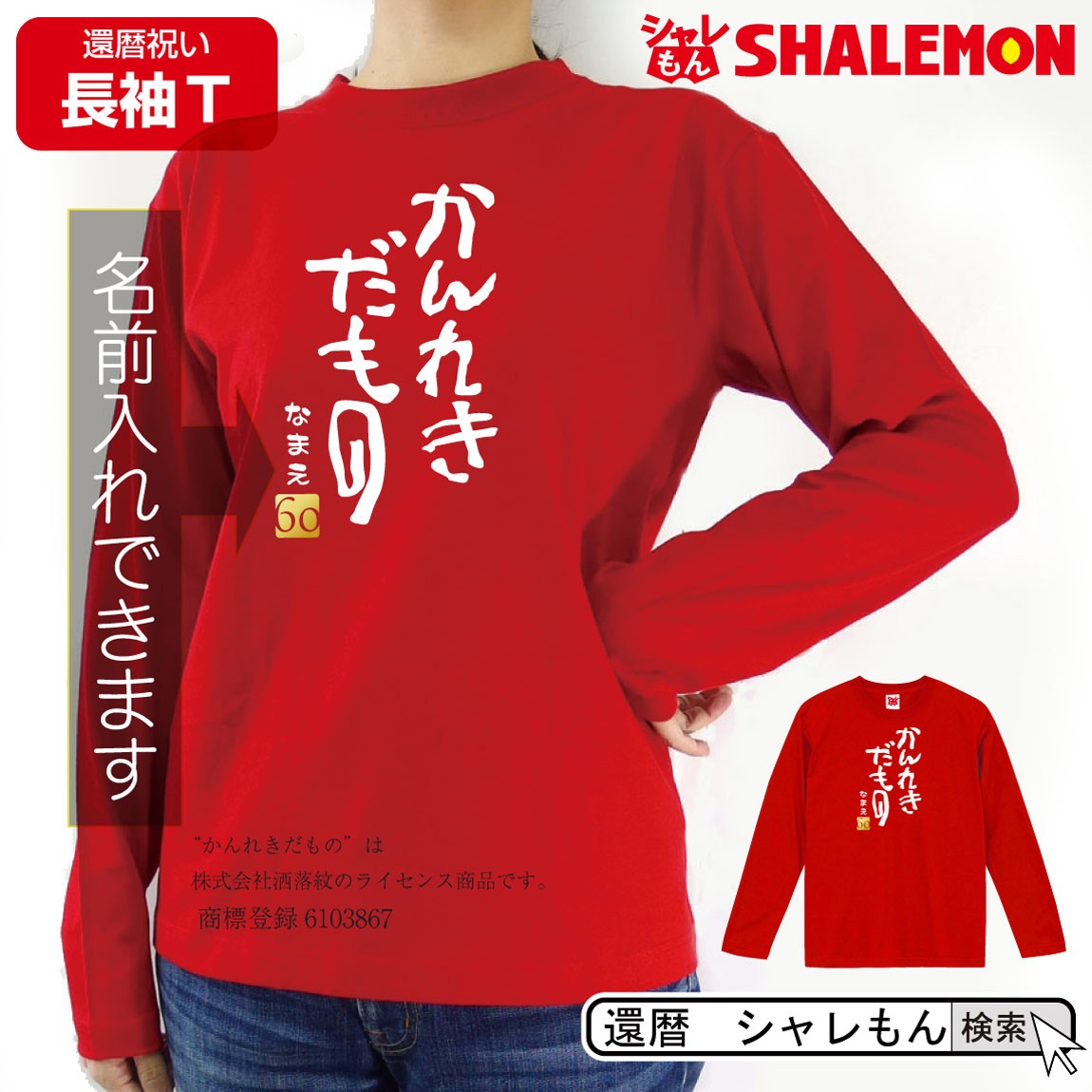還暦祝い 名入れ ( かんれきだもの 長袖 )( 60 ) 60歳 還暦 長袖 おもしろ ユニーク tシャツ 男女兼用 メンズ レディース 女性 男性 お祝い 父 母 (DMT)(A3A)