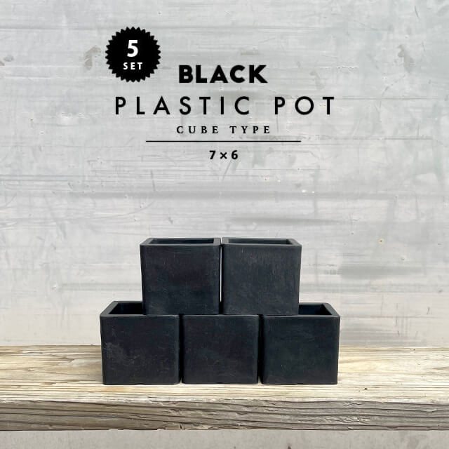 【5個セット】BLACK PLASTIC POT【CUBE TYPE】7.5cm×6.5cm 黒 プラ鉢 3号 植木鉢 ブラックポット おしゃれ かっこいい 厚い 四角 小さい marvista greenship