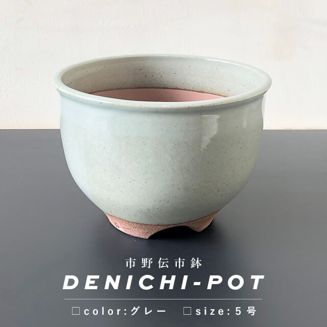 伝市鉢 コウロ型【グレー】5号 植木鉢 陶器 丹波立杭焼 市野伝市窯 サクラソウ 山野草 塊根 多肉 アガベ かっこいい おしゃれ