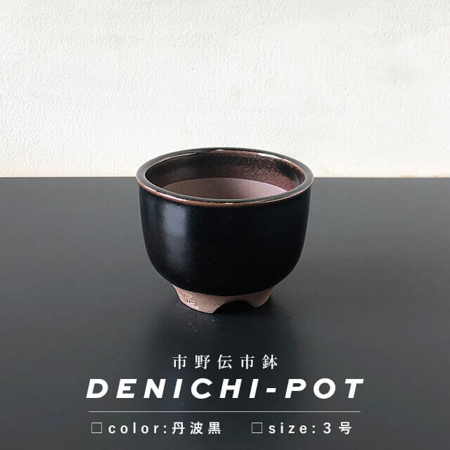伝市鉢 コウロ型【丹波黒】3号 植木鉢 陶器 丹波立杭焼 市野伝市窯 サクラソウ 山野草 塊根 多肉 アガベ かっこいい おしゃれ