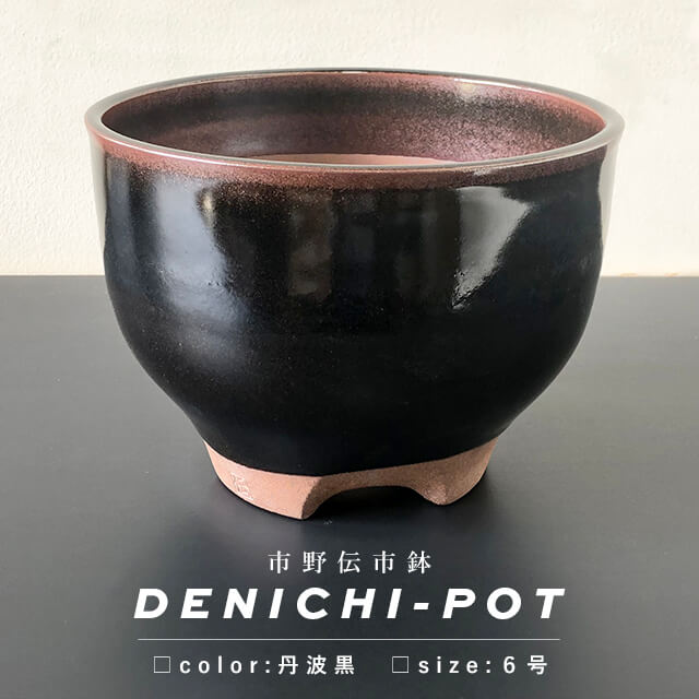 伝市鉢 コウロ型【丹波黒】6号 植木鉢 陶器 丹波立杭焼 市野伝市窯 サクラソウ 山野草 塊根 多肉 アガベ かっこいい おしゃれ