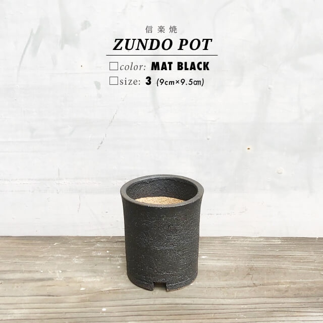 KAMIYAMA ZUNDO POT【ブラック 3号】9cm×9.5cm かみ山陶器 植木鉢 寸胴 信楽焼 シリンダー 底穴大きい おしゃれ かっこいい アガベ コーデックス サボテン