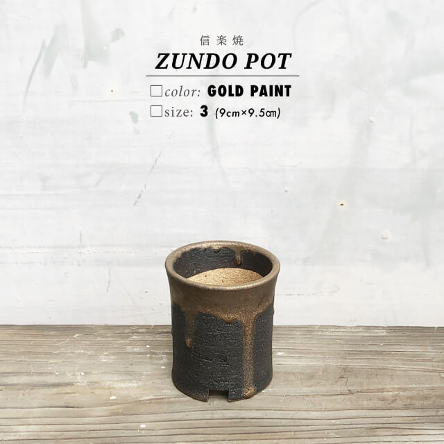 KAMIYAMA ZUNDO POT【金彩 3号】9cm×9.5cm かみ山陶器 植木鉢 寸胴 信楽焼 シリンダー 底穴大きい おしゃれ かっこいい アガベ コーデックス サボテン