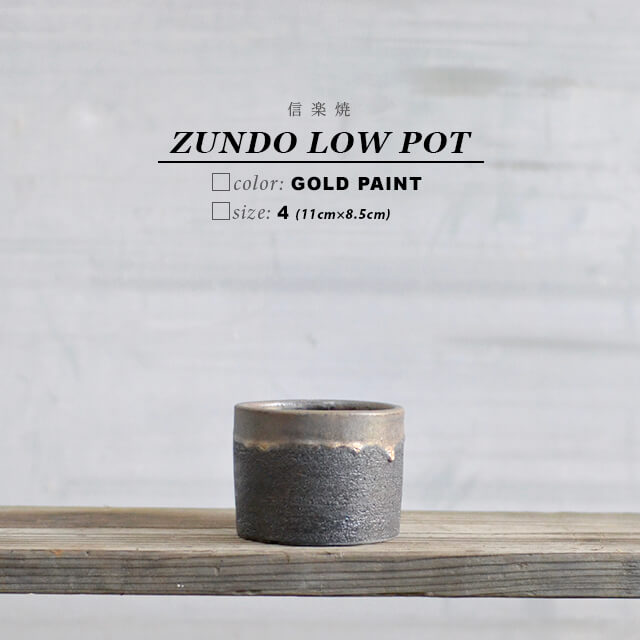 KAMIYAMA ZUNDO LOW POT【金彩 4号LOW】11cm×8.5cm かみ山陶器 植木鉢 寸胴 ロー 信楽焼 浅鉢 底穴大きい おしゃれ かっこいい アガベ コーデックス